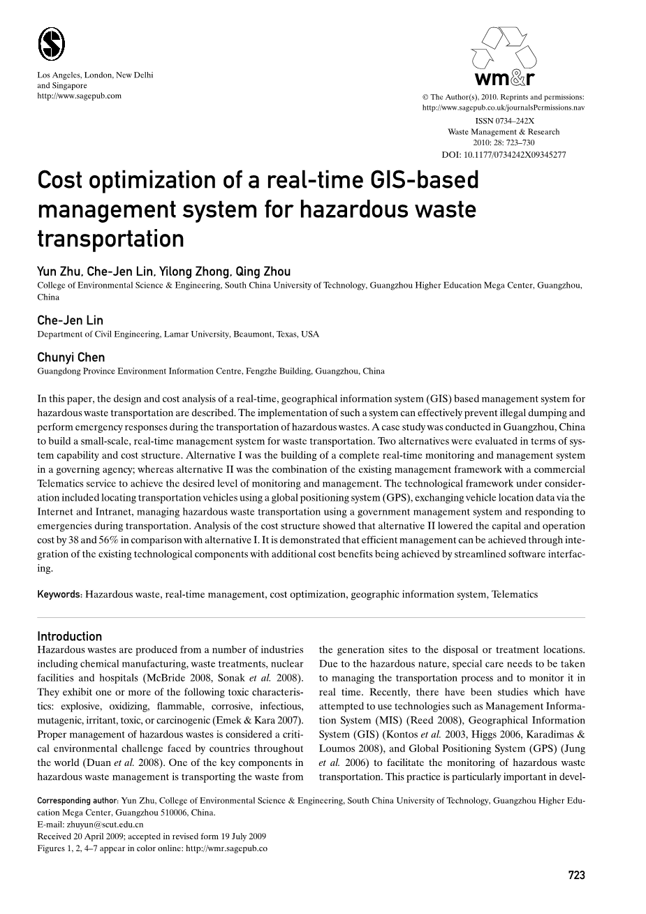 关键词:危险废物、实时管理、成本优化、地理信息系统、远程信息处理