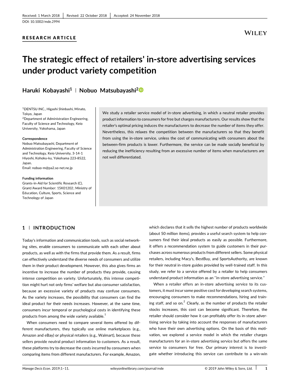 当零售商向顾客提供店内广告服务时,它必须为开发搜索系统、鼓励消费者做出推荐、雇佣和培训员工等付出一定的成本。显然,随着零售商库存产品数量的增加,这一成本会变得很大。因此,零售商应该考虑如何通过考虑有自己广告选择的制造商的反应来提供有利可图的店内广告服务。基于这一动机,我们探索了一种服务模式,在这种模式下,零售商向制造商收取店内广告服务费用,但向消费者免费提供同样的服务。我们的主要兴趣是调查引入这项服务是否有助于双赢。在多样化竞争中零售商和制造商之间的伙伴关系。换句话说,在什么条件下可以使用服务来协调供应链中的各方?