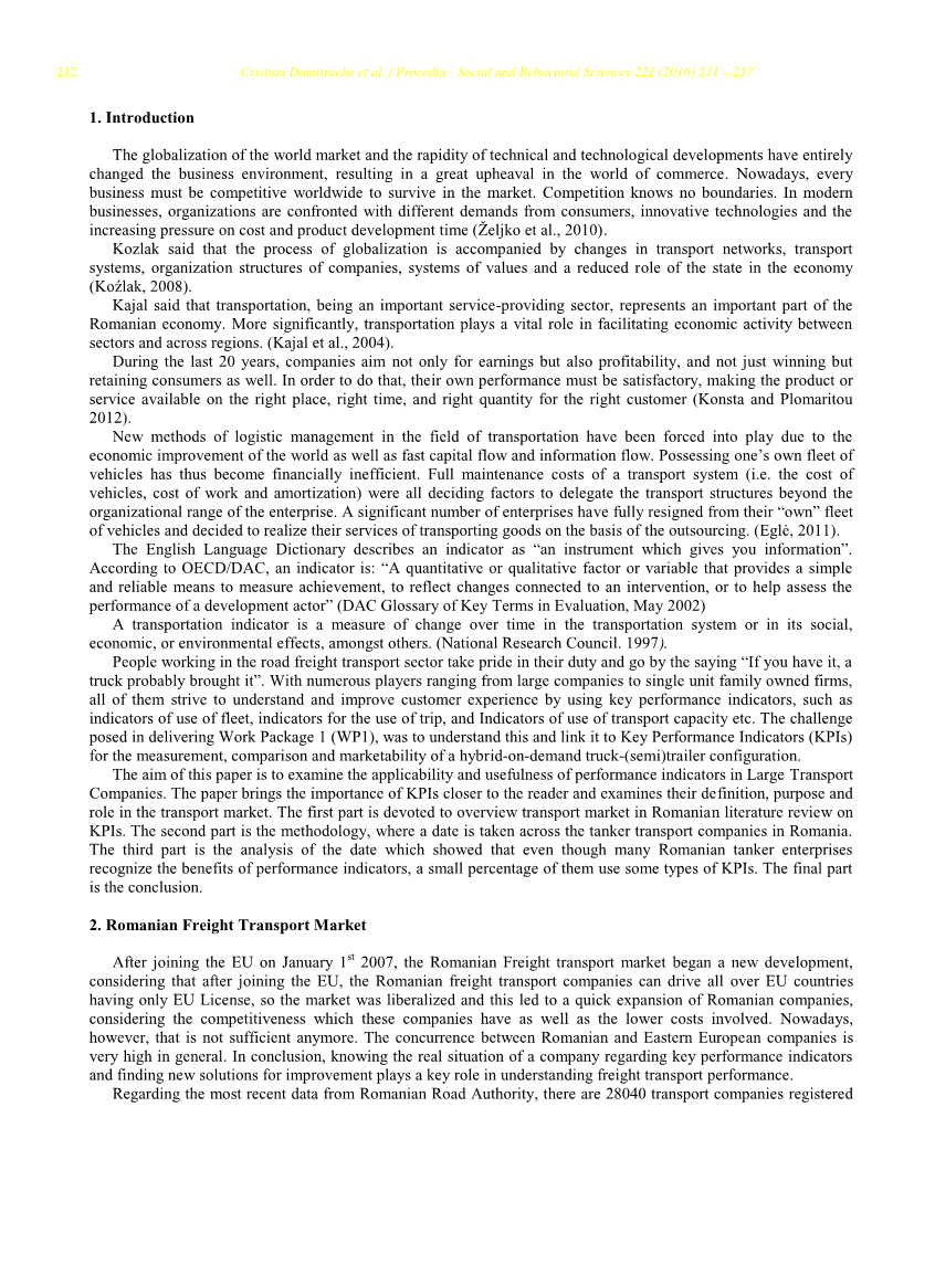 后来的贡献用定性指标充实了这个第一批关键绩效指标体系。Talley于1994年提出了一系列考虑到超出工程参数的以经济最优性来评估港口绩效的指标体系。最近,已经提出了新的包括物流服务的KPI来满足港口当前的需求, Owino等人象征性地于2006年提出了30个不同绩效指标的最新的清单,Marlow和Paixatilde;o于2003年提出了一系列特别强调了测量港口效益的重要性以及它们与缩减整个物流运输链关系的KPI。在同样的背景下,Bichou和Gray在2004年基于物流服务的绩效认为,所有的绩效指标都能够被分为三大类:客观存在的实物,生产力,经济以及财务指标。