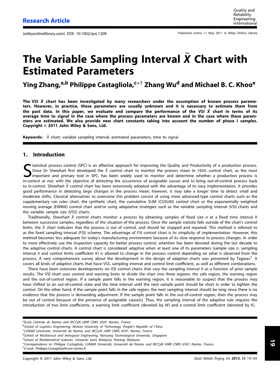 YingZhang, Philippe Castagliola, Zhang Wud and Michael B.C.Khooe