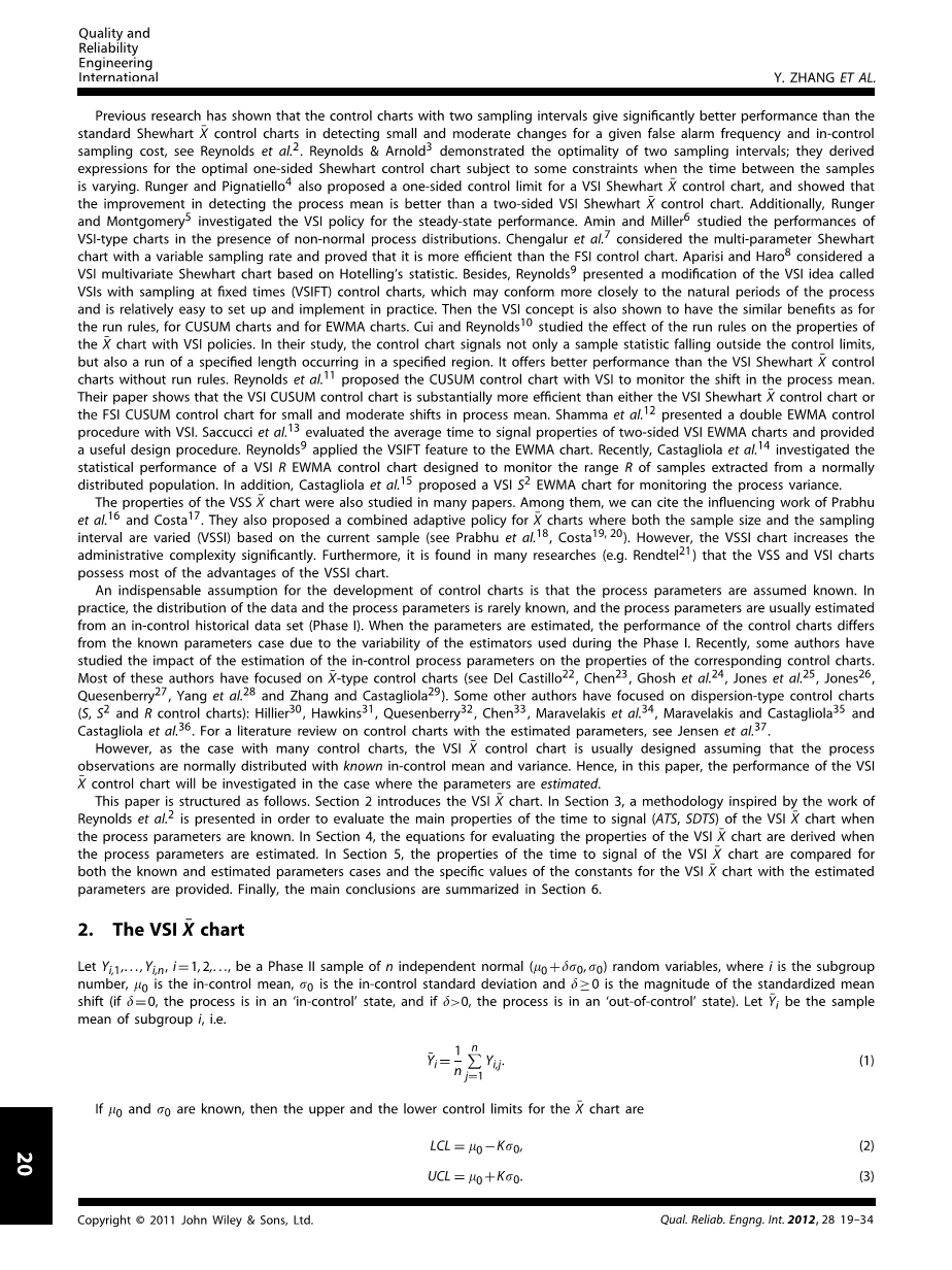 在许多论文中也研究了VSS 图的特性。其中,我们可以引用Prabhu[16]等人和Costa[17]的杰出成果。他们还提出了一种针对图的组合自适应策略,其中样本大小和采样间隔基于当前样本而变化的(VSSI)(参见Prabhu [18],Costa[19],[20])。但是,VSSI图显着增加了实际操作管理上的复杂性,此外,在许多研究中发现(例如Rendtel[21]),VSS和VSI图具有VSSI图的大部分优点,所以对于VSS和VSI控制图的研究显得更加重要。控制图的开发必不可少的假设是假设过程参数已知。实际上,我们很少知道数据和过程参数的分布,并且通常从控制中的历史数据集(阶段I)估计过程参数。当估计参数时,由于在阶段I期间使用的估计量的可变性,控制图的性能与已知参数情况下会产生差别。最近,一些作者研究了参数的估计对控制过程的影响以及相应控制图的属性。这些作者中的大多数都关注于型控制图(参见Del Castillo[22],Chen[23],Ghoshet al.[24],Joneset al.[25],Jones[26],Quesenberry[27],Yanget al.[28]和Zhang and Castagliola[29])。其他一些作者关注的是离散型控制图(S,和R控制图):Hillier[30],Hawkins[31],Quesenberry[32],Chen[33],Maravelakis等人[34],Maravelakis和Castagliola[35]以及Castagliola等人[36]。有关具有估计参数的控制图的文献综述,参见Jensen等人[37]。