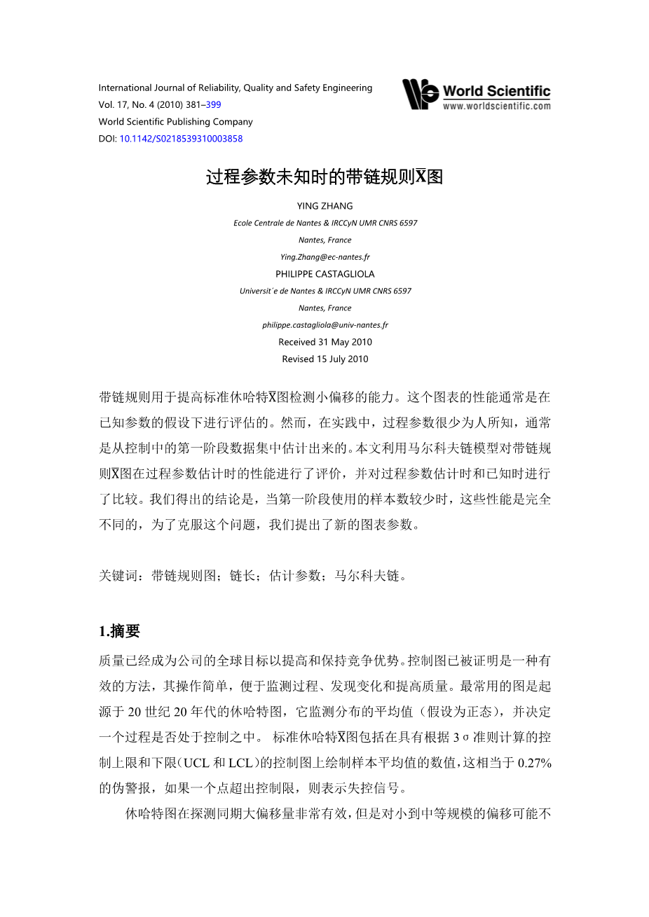 参数未知时带链规则控制图对生产质量过程控制外文翻译资料 2021-12-17 22:14:56 英语原文共 19 页 英语原文共 20 页资料编号:[4707] 原文和译文剩余内容已隐藏,您需要先支付 30元 才能查看原文和译文全部内容!立即支付 发小红书推广免费获取该资料资格。点击链接进入获取推广文案即可: Ai一键组稿 | 降AI率 | 降重复率 | 论文一键排版 PREVIOUS NEXT 您可能感兴趣的文章 一种新的需求响应型城市物流配送业务资源动态分配模型外文翻译资料 以T公司为例,根据基于活动的分类改进库存控制和预测外文翻译资料 新零售条件下生鲜食品家庭配送模式研究外文翻译资料 探索大规模定制作为快递行业创新的潜力外文翻译资料 中国的国内快递业发展战略分析外文翻译资料 有效的物流管理物流 :什么是物流?外文翻译资料 运用层次分析法分析供应链管理的绩效评价外文翻译资料 基于分支切割算法定价的带时间窗口的提货和交货问题外文翻译资料 供应链管理中的电子商务物流:实践视角外文翻译资料 第三方物流服务对客户绩效的贡献外文翻译资料