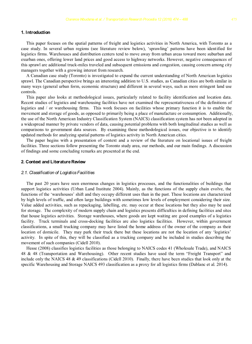 本文主要关注北美的货运和物流活动的空间模式,以多伦多作为案例研究。在几个城市地区(参见文献综述),“扩张”模式已经为物流公司确定。仓库和配送中心更倾向于远离城市向郊区和远郊发展,它们提供较低的土地价格和良好的高速公路网络。然而,这种扩张的不良后果是更多的车辆行驶英里数,随后的排放量和拥塞,导致担忧与日俱增与城市管理者之间的共同关注。