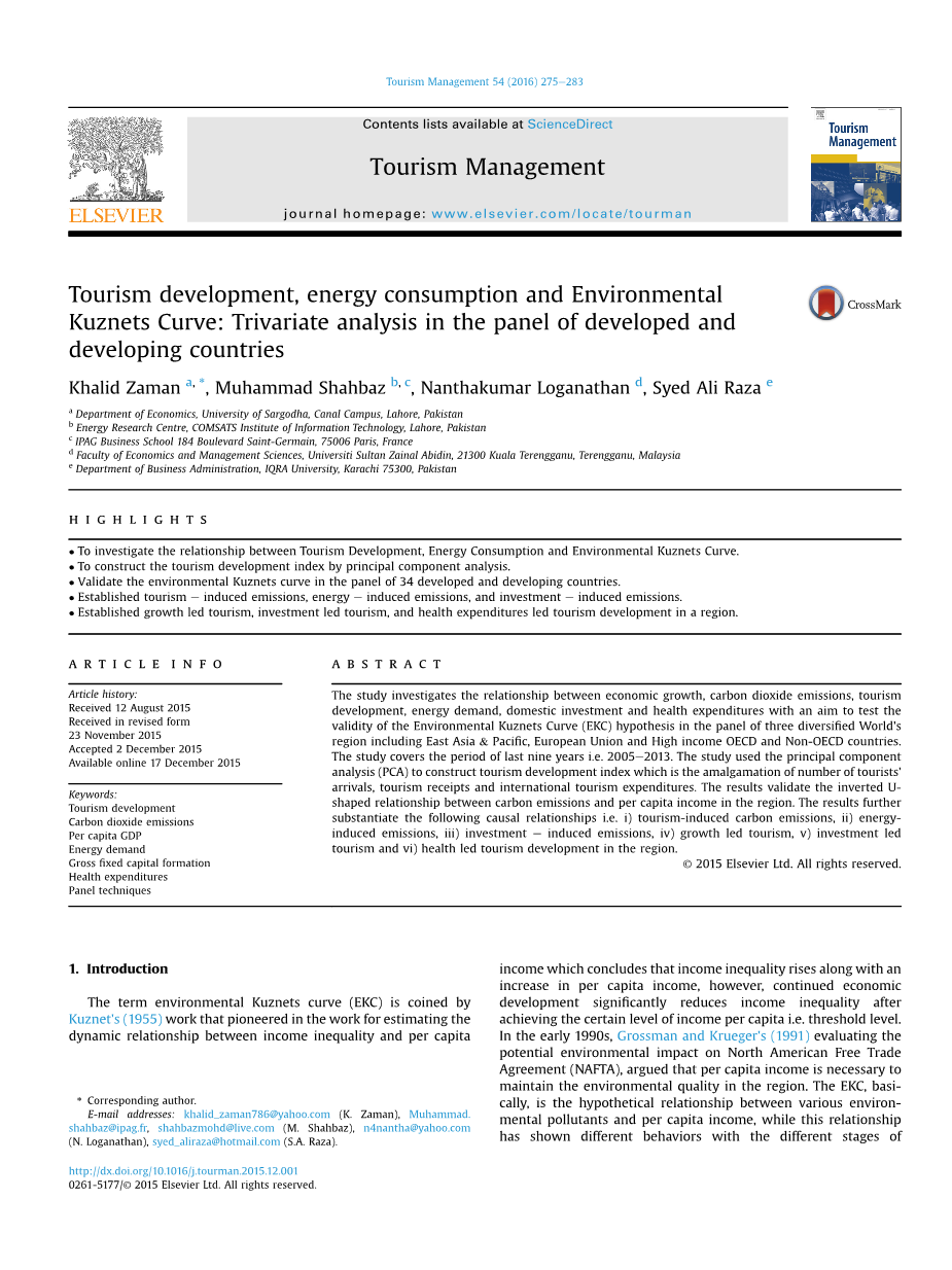 • 调查旅游开发,能源消耗和环境库兹涅茨曲线之间的关系