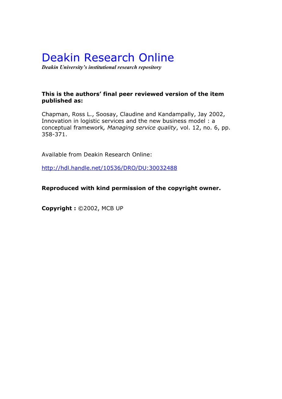 物流服务创新和新的商业模式:概念框架外文翻译资料 2023-02-09 14:13:22 英语原文共 21 页,剩余内容已隐藏,支付完成后下载完整资料 英语原文共 14 页,剩余内容已隐藏,支付完成后下载完整资料 资料编号:[139645],资料为PDF文档或Word文档,PDF文档可免费转换为Word 原文和译文剩余内容已隐藏,您需要先支付 30元 才能查看原文和译文全部内容!立即支付 发小红书推广免费获取该资料资格。点击链接进入获取推广文案即可: Ai一键组稿 | 降AI率 | 降重复率 | 论文一键排版 PREVIOUS NEXT 您可能感兴趣的文章 一种新的需求响应型城市物流配送业务资源动态分配模型外文翻译资料 以T公司为例,根据基于活动的分类改进库存控制和预测外文翻译资料 新零售条件下生鲜食品家庭配送模式研究外文翻译资料 探索大规模定制作为快递行业创新的潜力外文翻译资料 中国的国内快递业发展战略分析外文翻译资料 有效的物流管理物流 :什么是物流?外文翻译资料 运用层次分析法分析供应链管理的绩效评价外文翻译资料 基于分支切割算法定价的带时间窗口的提货和交货问题外文翻译资料 供应链管理中的电子商务物流:实践视角外文翻译资料 第三方物流服务对客户绩效的贡献外文翻译资料