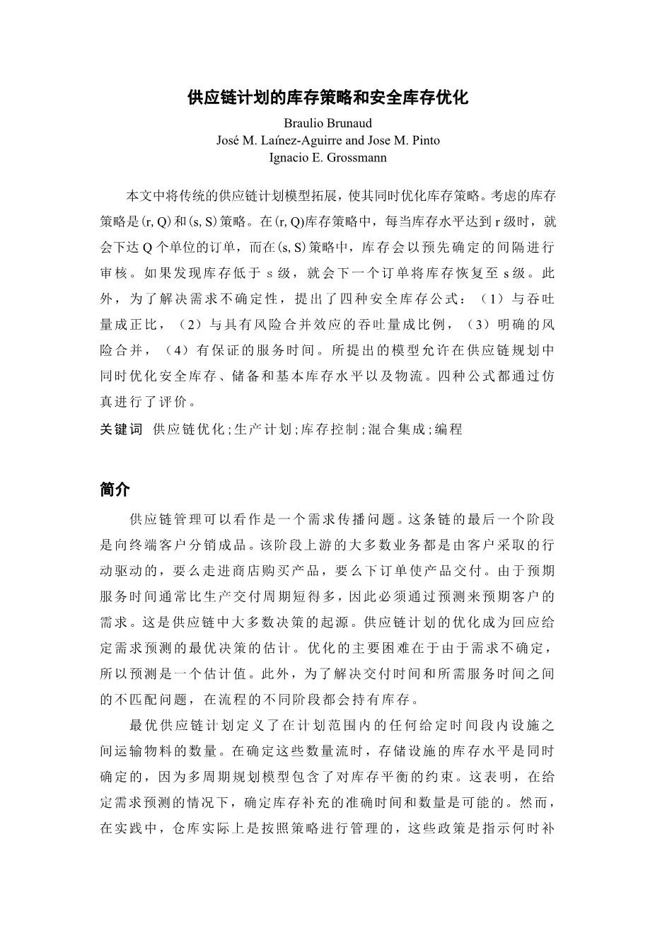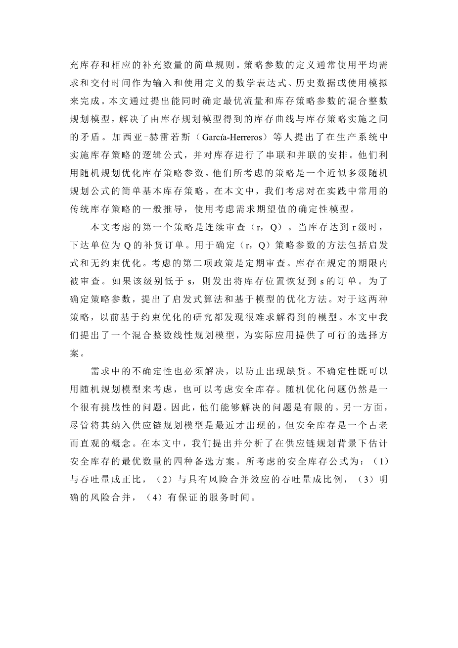 供应链计划的库存策略和安全库存优化外文翻译资料 2023-02-10 10:03:22 英语译文共 13 页,剩余内容已隐藏,支付完成后下载完整资料 资料编号:[413877],资料为PDF文档或Word文档,PDF文档可免费转换为Word 原文和译文剩余内容已隐藏,您需要先支付 30元 才能查看原文和译文全部内容!立即支付 发小红书推广免费获取该资料资格。点击链接进入获取推广文案即可: Ai一键组稿 | 降AI率 | 降重复率 | 论文一键排版 PREVIOUS NEXT 您可能感兴趣的文章 一种新的需求响应型城市物流配送业务资源动态分配模型外文翻译资料 以T公司为例,根据基于活动的分类改进库存控制和预测外文翻译资料 新零售条件下生鲜食品家庭配送模式研究外文翻译资料 探索大规模定制作为快递行业创新的潜力外文翻译资料 中国的国内快递业发展战略分析外文翻译资料 有效的物流管理物流 :什么是物流?外文翻译资料 运用层次分析法分析供应链管理的绩效评价外文翻译资料 基于分支切割算法定价的带时间窗口的提货和交货问题外文翻译资料 供应链管理中的电子商务物流:实践视角外文翻译资料 第三方物流服务对客户绩效的贡献外文翻译资料