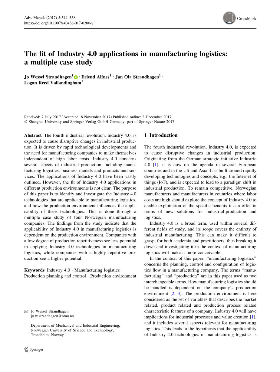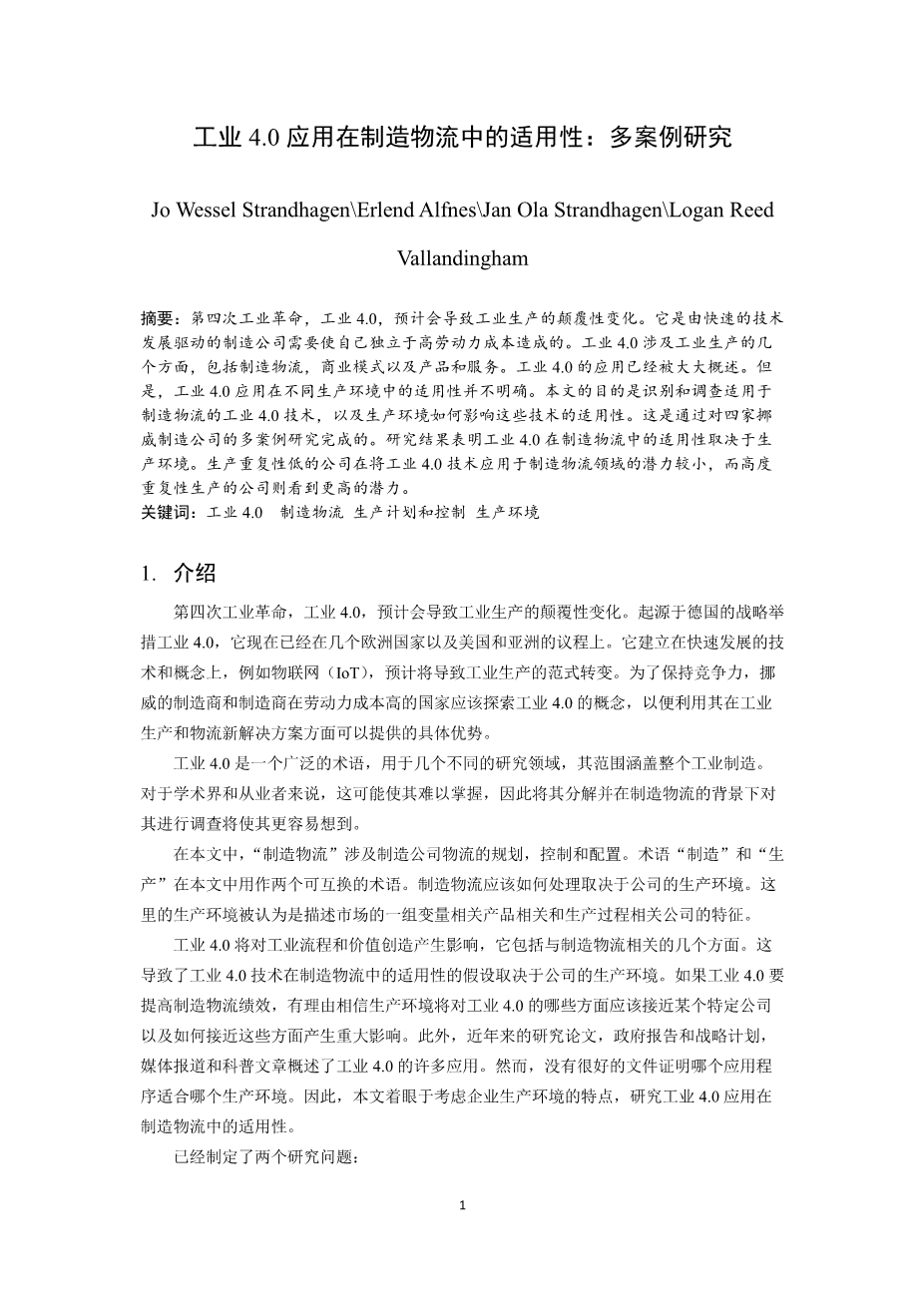 工业 4.0应用在制造物流中的适用性:多案例研究外文翻译资料 2023-02-20 18:40:37 英语原文共 15 页,剩余内容已隐藏,支付完成后下载完整资料 英语译文共 15 页,剩余内容已隐藏,支付完成后下载完整资料 资料编号:[23904],资料为PDF文档或Word文档,PDF文档可免费转换为Word 原文和译文剩余内容已隐藏,您需要先支付 30元 才能查看原文和译文全部内容!立即支付 发小红书推广免费获取该资料资格。点击链接进入获取推广文案即可: Ai一键组稿 | 降AI率 | 降重复率 | 论文一键排版 PREVIOUS NEXT 您可能感兴趣的文章 一种新的需求响应型城市物流配送业务资源动态分配模型外文翻译资料 以T公司为例,根据基于活动的分类改进库存控制和预测外文翻译资料 新零售条件下生鲜食品家庭配送模式研究外文翻译资料 探索大规模定制作为快递行业创新的潜力外文翻译资料 中国的国内快递业发展战略分析外文翻译资料 有效的物流管理物流 :什么是物流?外文翻译资料 运用层次分析法分析供应链管理的绩效评价外文翻译资料 基于分支切割算法定价的带时间窗口的提货和交货问题外文翻译资料 供应链管理中的电子商务物流:实践视角外文翻译资料 第三方物流服务对客户绩效的贡献外文翻译资料