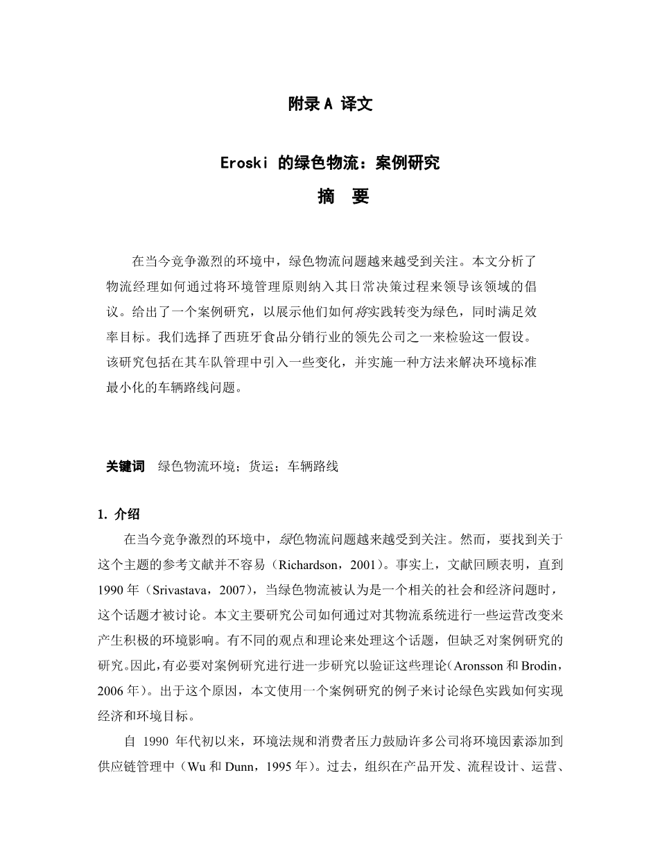 Eroski的绿色物流:案例研究外文翻译资料