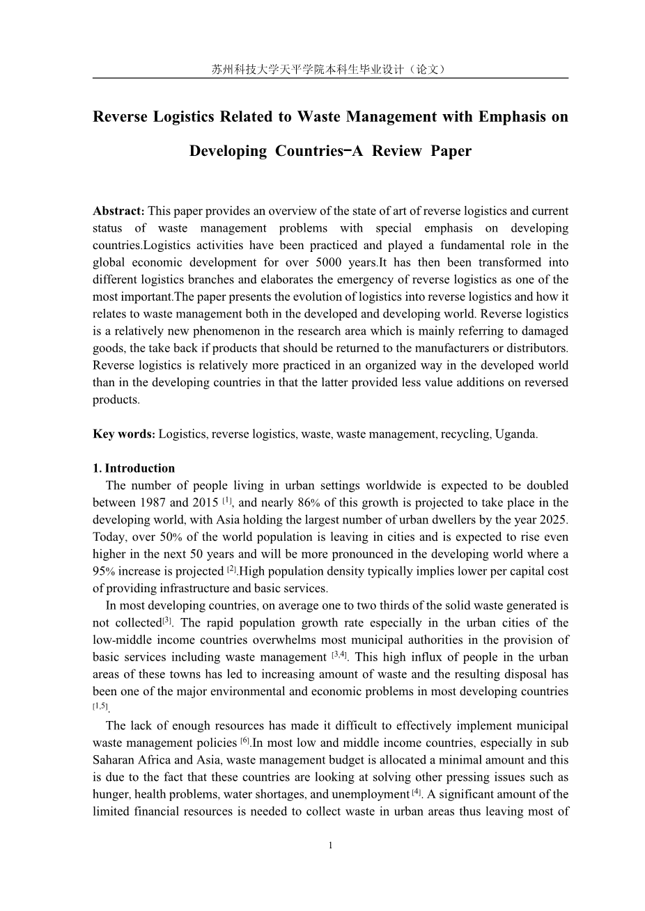 关键词:物流,逆向物流,废物,废物管理,回收,乌干达