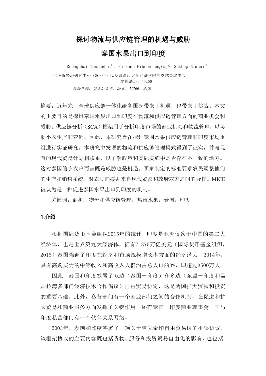 探讨泰国水果对印度物流与供应链管理的机遇与威胁外文翻译资料 2023-06-30 08:43:17 英语原文共 8 页,剩余内容已隐藏,支付完成后下载完整资料 英语译文共 10 页,剩余内容已隐藏,支付完成后下载完整资料 资料编号:[602962],资料为PDF文档或Word文档,PDF文档可免费转换为Word 原文和译文剩余内容已隐藏,您需要先支付 30元 才能查看原文和译文全部内容!立即支付 发小红书推广免费获取该资料资格。点击链接进入获取推广文案即可: Ai一键组稿 | 降AI率 | 降重复率 | 论文一键排版 PREVIOUS NEXT 您可能感兴趣的文章 一种新的需求响应型城市物流配送业务资源动态分配模型外文翻译资料 以T公司为例,根据基于活动的分类改进库存控制和预测外文翻译资料 新零售条件下生鲜食品家庭配送模式研究外文翻译资料 探索大规模定制作为快递行业创新的潜力外文翻译资料 中国的国内快递业发展战略分析外文翻译资料 有效的物流管理物流 :什么是物流?外文翻译资料 运用层次分析法分析供应链管理的绩效评价外文翻译资料 基于分支切割算法定价的带时间窗口的提货和交货问题外文翻译资料 供应链管理中的电子商务物流:实践视角外文翻译资料 第三方物流服务对客户绩效的贡献外文翻译资料