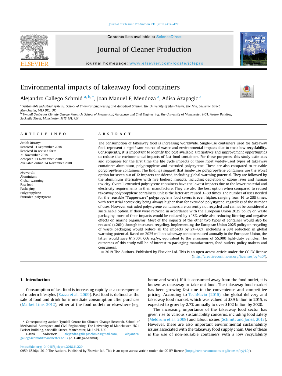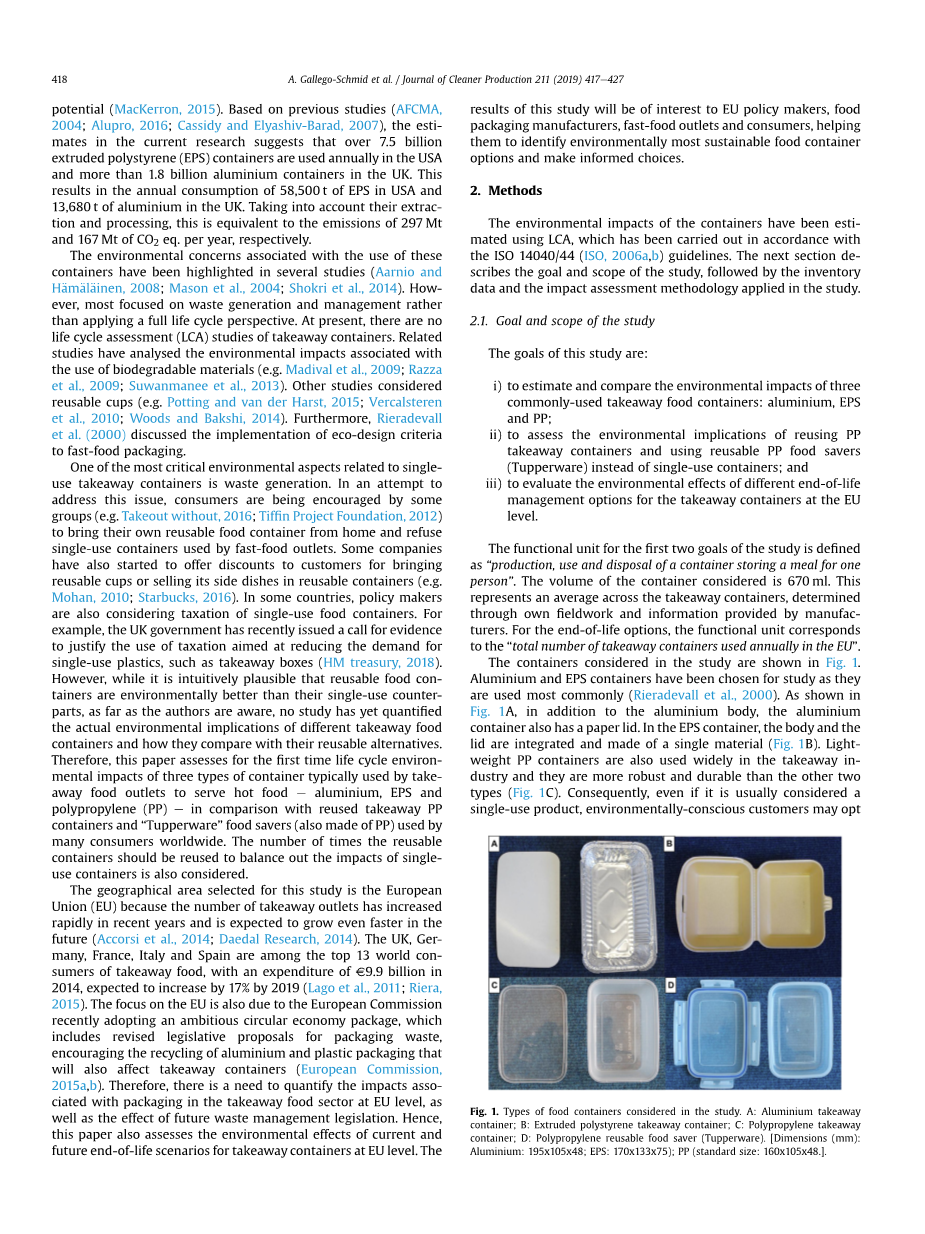 与使用这些容器相关的环境问题已在多项研究中得到强调(Aarnio和HamalAinen,2008年;Mason等人,2004年;Shokrietal,2014年)。然而,大多数关注的是废物的产生和管理,而不是应用全生命周期的观点。外卖集装箱的生命周期评价(LCA)研究尚无定论。相关研究分析了与使用可生物降解材料相关的环境影响(如Madival等人,2009年;Ranza等人,2009年;Suwanmanee等人,2013年)。关于可再利用杯子的其他研究(如Potting和van der Harst,2015年;Vercalsteren等人,2010年;伍兹和巴克希,2014年)。Rieradevall等人(2000)讨论了快餐包装生态设计标准的实施问题。