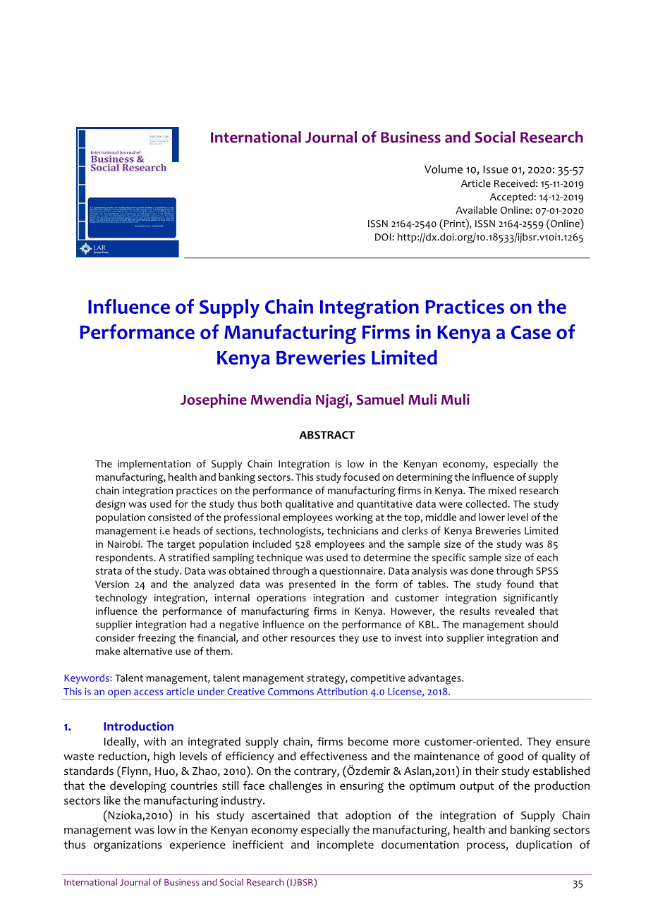 供应链整合实践对供应链管理的影响:以肯尼亚制造业中肯尼亚啤酒有限公司的企业绩效为例外文翻译资料