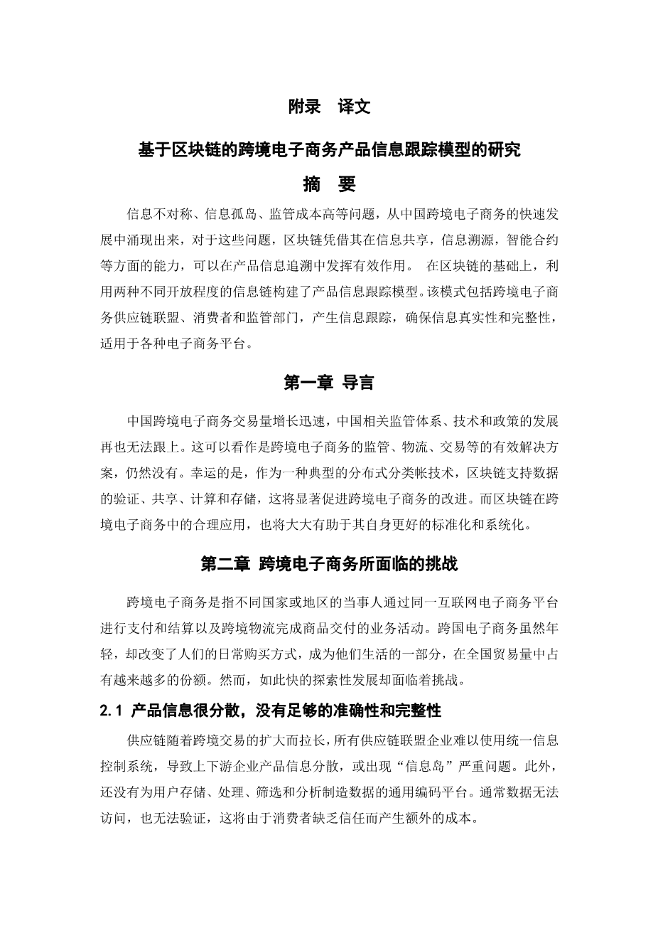 基于区块链的跨境电子商务产品信息跟踪模型的研究外文翻译资料 2023-08-22 09:17:16 英语原文共 4 页,剩余内容已隐藏,支付完成后下载完整资料 英语译文共 7 页,剩余内容已隐藏,支付完成后下载完整资料 资料编号:[606525],资料为PDF文档或Word文档,PDF文档可免费转换为Word 原文和译文剩余内容已隐藏,您需要先支付 30元 才能查看原文和译文全部内容!立即支付 发小红书推广免费获取该资料资格。点击链接进入获取推广文案即可: Ai一键组稿 | 降AI率 | 降重复率 | 论文一键排版 PREVIOUS NEXT 您可能感兴趣的文章 一种新的需求响应型城市物流配送业务资源动态分配模型外文翻译资料 以T公司为例,根据基于活动的分类改进库存控制和预测外文翻译资料 新零售条件下生鲜食品家庭配送模式研究外文翻译资料 探索大规模定制作为快递行业创新的潜力外文翻译资料 中国的国内快递业发展战略分析外文翻译资料 有效的物流管理物流 :什么是物流?外文翻译资料 运用层次分析法分析供应链管理的绩效评价外文翻译资料 基于分支切割算法定价的带时间窗口的提货和交货问题外文翻译资料 供应链管理中的电子商务物流:实践视角外文翻译资料 第三方物流服务对客户绩效的贡献外文翻译资料