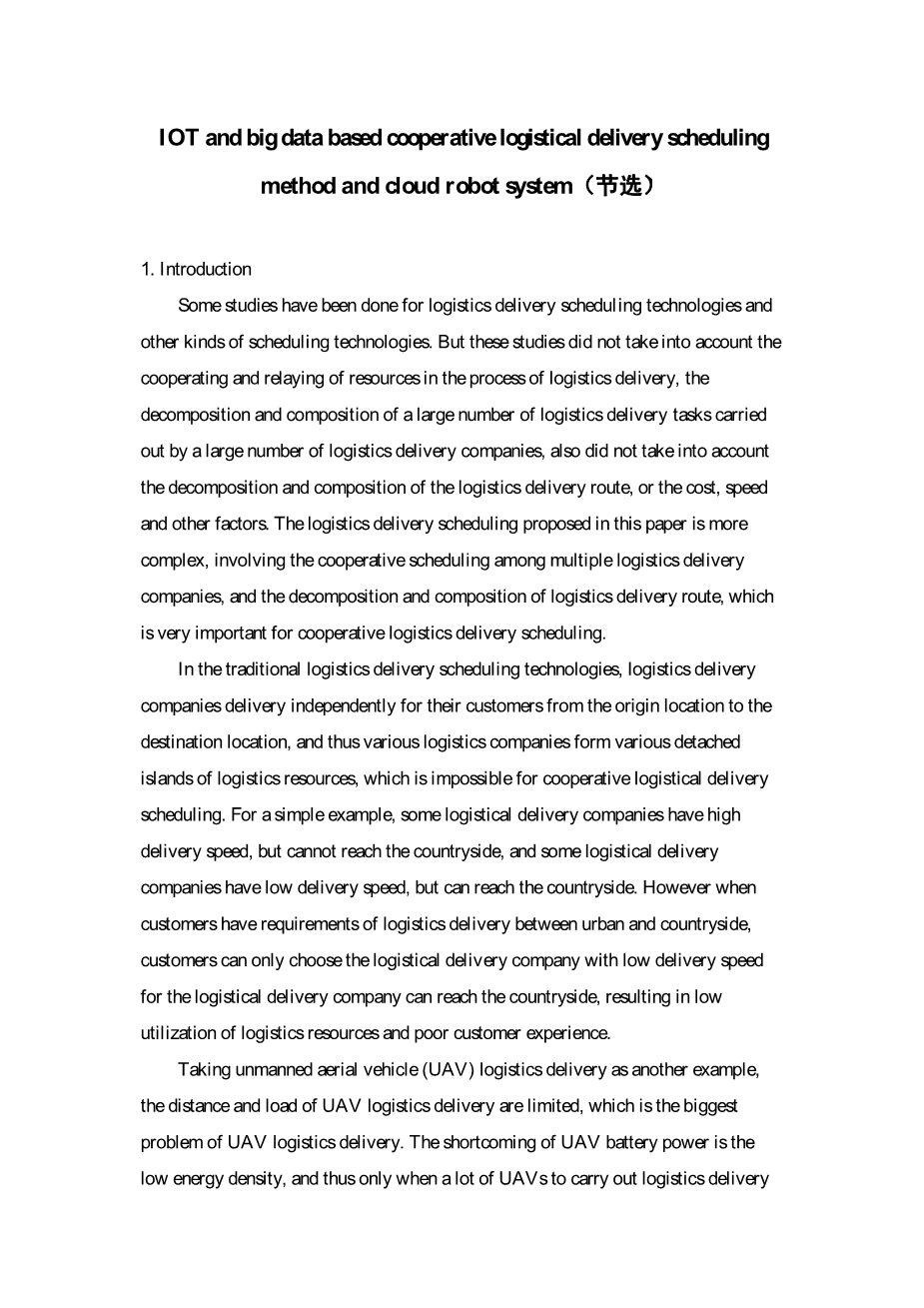 基于物联网和大数据的协同物流配送调度方法及云机器人系统(节选)