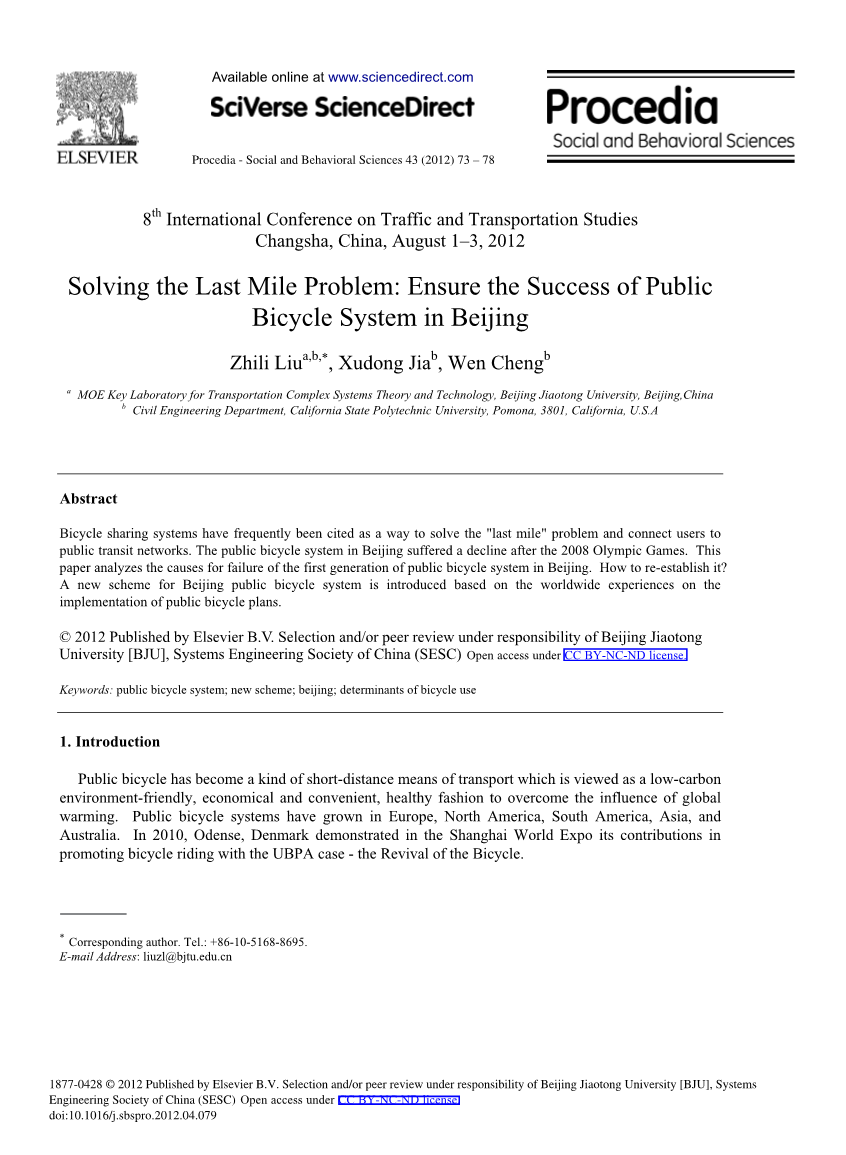 关键词:公共自行车系统;新方案;北京;自行车使用的决定因素