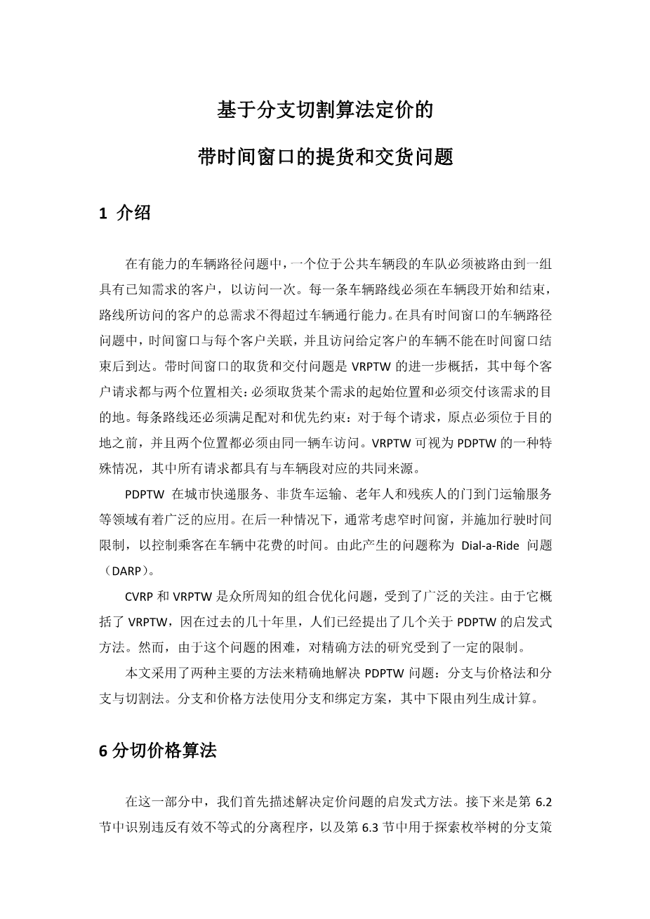 基于分支切割算法定价的带时间窗口的提货和交货问题外文翻译资料 2023-10-07 15:41:22 英语原文共 10 页,剩余内容已隐藏,支付完成后下载完整资料 英语译文共 5 页,剩余内容已隐藏,支付完成后下载完整资料 资料编号:[609759],资料为PDF文档或Word文档,PDF文档可免费转换为Word 原文和译文剩余内容已隐藏,您需要先支付 30元 才能查看原文和译文全部内容!立即支付 发小红书推广免费获取该资料资格。点击链接进入获取推广文案即可: Ai一键组稿 | 降AI率 | 降重复率 | 论文一键排版 PREVIOUS NEXT 您可能感兴趣的文章 一种新的需求响应型城市物流配送业务资源动态分配模型外文翻译资料 以T公司为例,根据基于活动的分类改进库存控制和预测外文翻译资料 新零售条件下生鲜食品家庭配送模式研究外文翻译资料 探索大规模定制作为快递行业创新的潜力外文翻译资料 中国的国内快递业发展战略分析外文翻译资料 有效的物流管理物流 :什么是物流?外文翻译资料 运用层次分析法分析供应链管理的绩效评价外文翻译资料 基于分支切割算法定价的带时间窗口的提货和交货问题外文翻译资料 供应链管理中的电子商务物流:实践视角外文翻译资料 第三方物流服务对客户绩效的贡献外文翻译资料