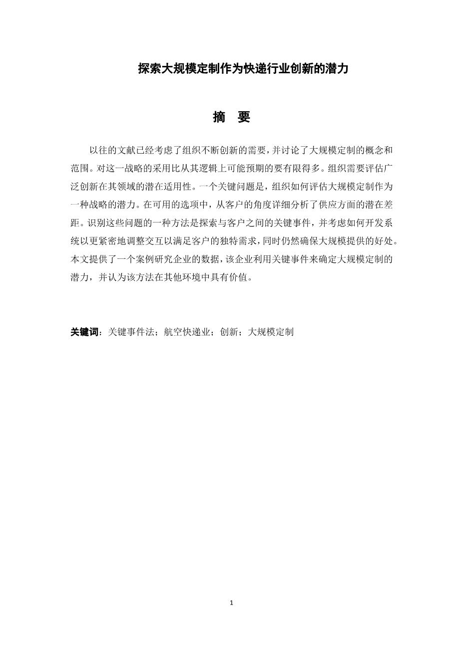 探索大规模定制作为快递行业创新的潜力外文翻译资料 2023-10-07 15:42:38 英语原文共 17 页,剩余内容已隐藏,支付完成后下载完整资料 英语译文共 15 页,剩余内容已隐藏,支付完成后下载完整资料 资料编号:[609752],资料为PDF文档或Word文档,PDF文档可免费转换为Word 原文和译文剩余内容已隐藏,您需要先支付 30元 才能查看原文和译文全部内容!立即支付 发小红书推广免费获取该资料资格。点击链接进入获取推广文案即可: Ai一键组稿 | 降AI率 | 降重复率 | 论文一键排版 PREVIOUS NEXT 您可能感兴趣的文章 一种新的需求响应型城市物流配送业务资源动态分配模型外文翻译资料 以T公司为例,根据基于活动的分类改进库存控制和预测外文翻译资料 新零售条件下生鲜食品家庭配送模式研究外文翻译资料 探索大规模定制作为快递行业创新的潜力外文翻译资料 中国的国内快递业发展战略分析外文翻译资料 有效的物流管理物流 :什么是物流?外文翻译资料 运用层次分析法分析供应链管理的绩效评价外文翻译资料 基于分支切割算法定价的带时间窗口的提货和交货问题外文翻译资料 供应链管理中的电子商务物流:实践视角外文翻译资料 第三方物流服务对客户绩效的贡献外文翻译资料