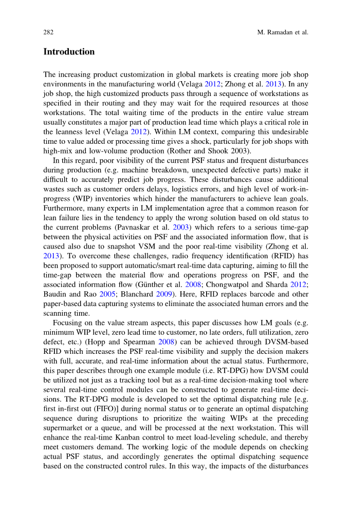 在全球市场上日益增长的产品定制化正在为制造业创造更多的工作车间环境(Velaga,2012;Zhong等人,2013)。在任何的作业车间中,高定制化的产品都会按照其路径中指定的顺序通过一系列的空间站,并且他们可能会在这些工作站上的等待所需要的资源。在整个价值流中,产品的总等待时间通常构成生产提前期的一个主要部分,并在最低水平中起着关键的作用(Velaga,2012)。在LM目标下,将这种不符合需要的时间比作附加价值或者处理时间将会给那些特别是高混合和小批量生产的场所带来巨大的冲击(Rother amp; Shake,2013)。