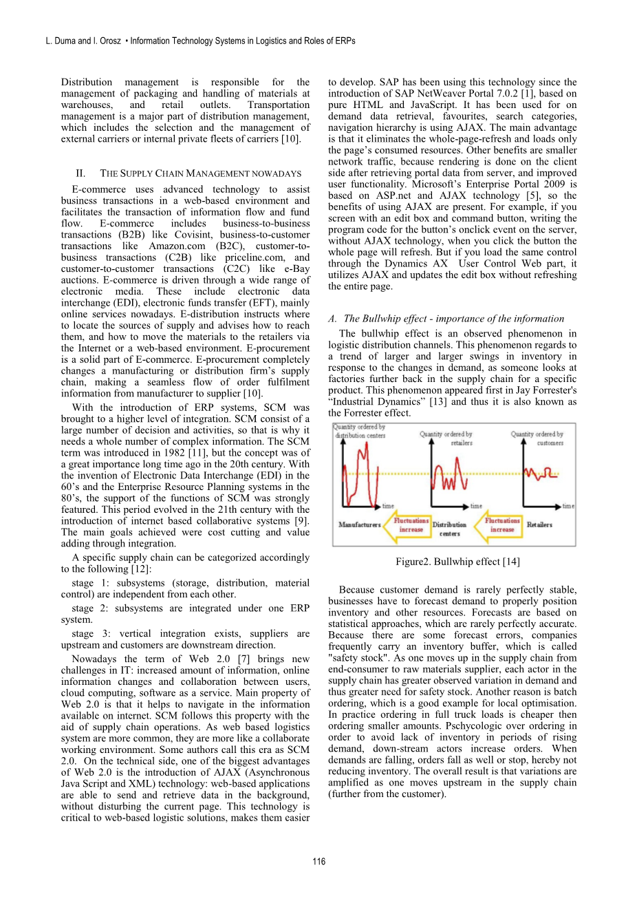 如今Web 2.0 [7]的术语为IT带来了新的挑战:在线信息量增加,用户之间的信息变化和协作,云计算,软件即服务。Web 2.0有助于在互联网上使用导航信息。 SCM遵循此属性为供应链的运作提供帮助。基于网络的物流系统更常见,它们更像是一种协作工作环境。一些人称这个时代为SCM2.0。在技术方面,Web 2.0最大的优势之一是AJAX(异步Java Script and XML)技术的引入:基于Web的应用程序,能够在后台发送和检索数据,不打扰当前页面。这项技术对基于Web的物流解决方案至关重要。
