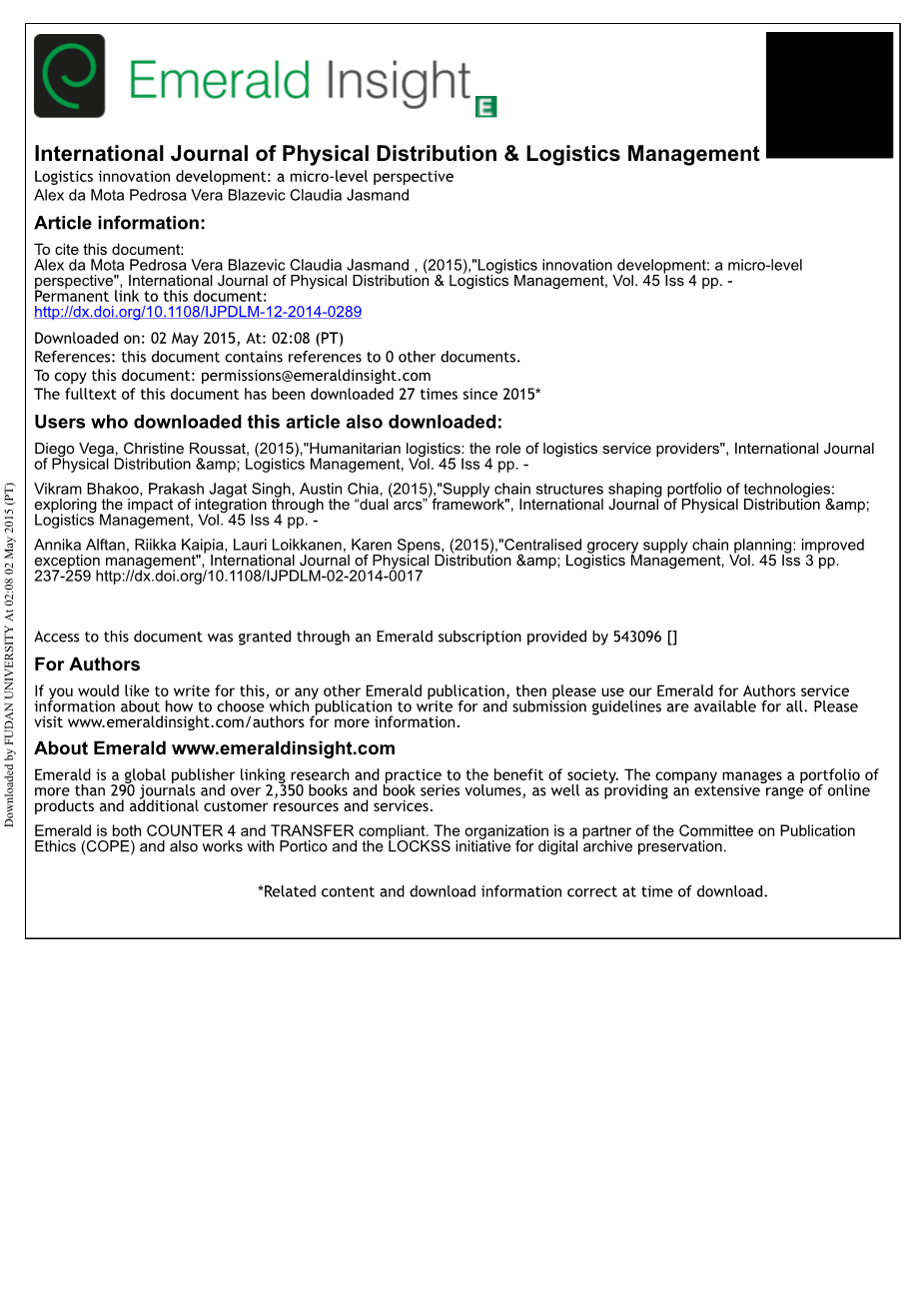 最近的物流创新研究强调,服务公司,如lsp,需要增加他们在外部知识获取的参与,以利用创新发展(例如,Flint et al., 2008;瓦格纳和萨特,2012)。然而,只有少数研究关注整个创新开发过程中的客户交互(如Melton和Hartline, 2010)。例如,他们揭示了LSPs在流程中与客户交互,客户通过与企业扮演不同的知识共同生产者角色来为流程做出贡献(例如,Blazevic和Lievens, 2008;da Mota Pedrosa, 2012)。总的来说,似乎lsp从创新过程中的客户交互中获益