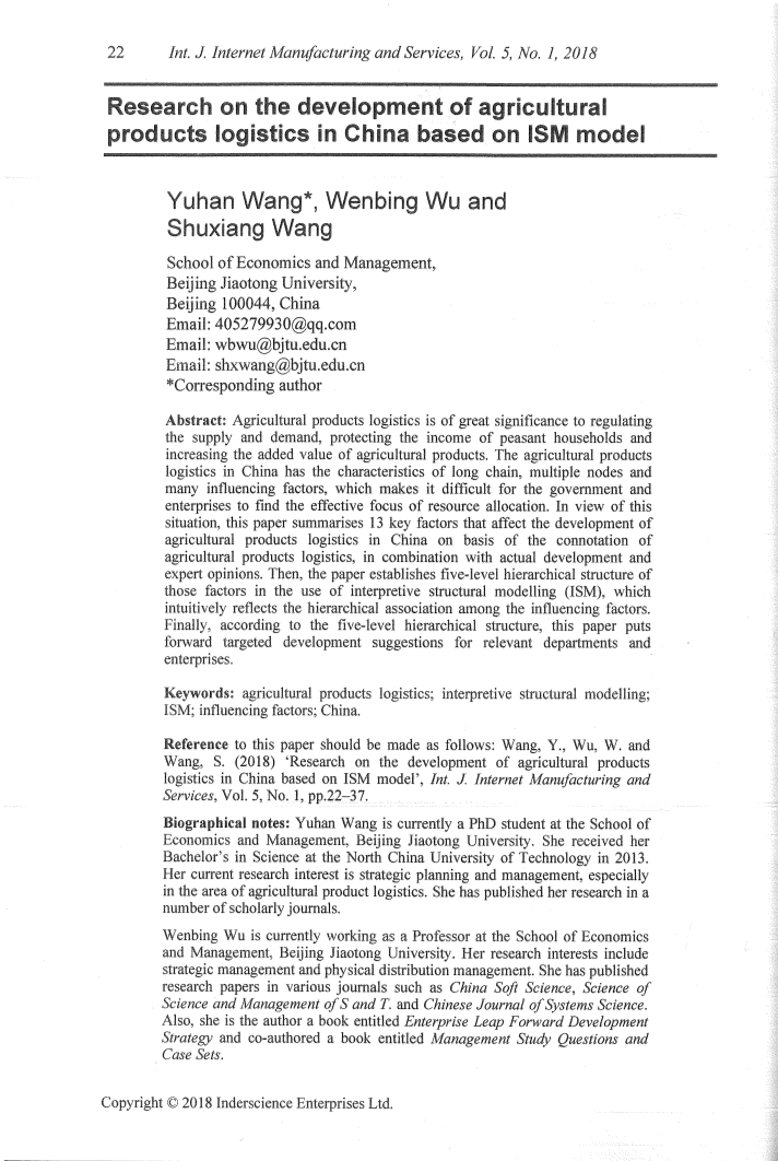 大型超市生鲜农产品供应物流模式分析外文翻译资料 2022-02-16 22:05:00 英语原文共 16 页,剩余内容已隐藏,支付完成后下载完整资料 英语译文共 15 页,剩余内容已隐藏,支付完成后下载完整资料资料编号:[450845],资料为PDF文档或Word文档,PDF文档可免费转换为Word 原文和译文剩余内容已隐藏,您需要先支付 30元 才能查看原文和译文全部内容!立即支付 发小红书推广免费获取该资料资格。点击链接进入获取推广文案即可: Ai一键组稿 | 降AI率 | 降重复率 | 论文一键排版 PREVIOUS NEXT 您可能感兴趣的文章 一种新的需求响应型城市物流配送业务资源动态分配模型外文翻译资料 以T公司为例,根据基于活动的分类改进库存控制和预测外文翻译资料 新零售条件下生鲜食品家庭配送模式研究外文翻译资料 探索大规模定制作为快递行业创新的潜力外文翻译资料 中国的国内快递业发展战略分析外文翻译资料 有效的物流管理物流 :什么是物流?外文翻译资料 运用层次分析法分析供应链管理的绩效评价外文翻译资料 基于分支切割算法定价的带时间窗口的提货和交货问题外文翻译资料 供应链管理中的电子商务物流:实践视角外文翻译资料 第三方物流服务对客户绩效的贡献外文翻译资料