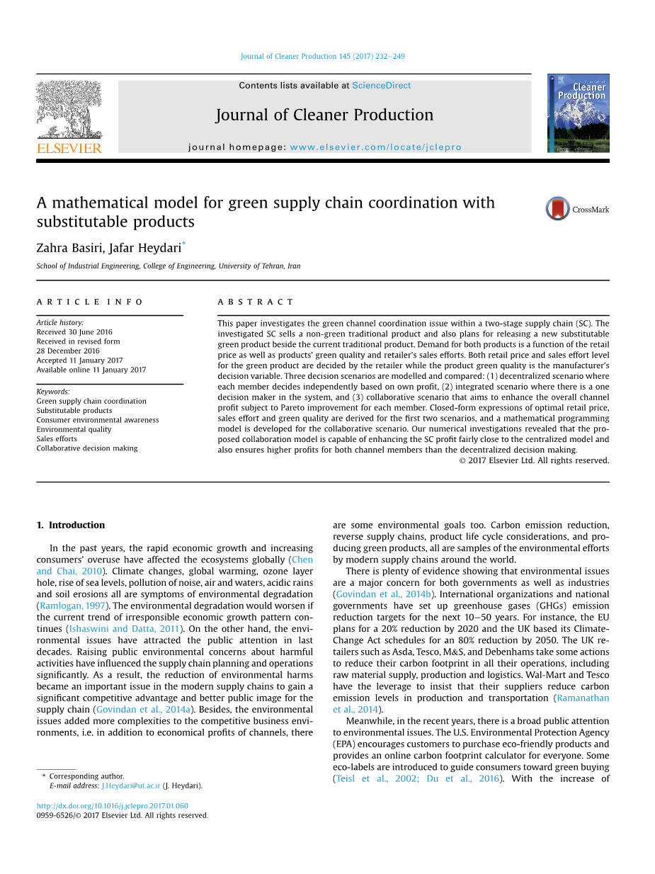 基于可替代产品绿色供应链协调的数学模型外文翻译资料