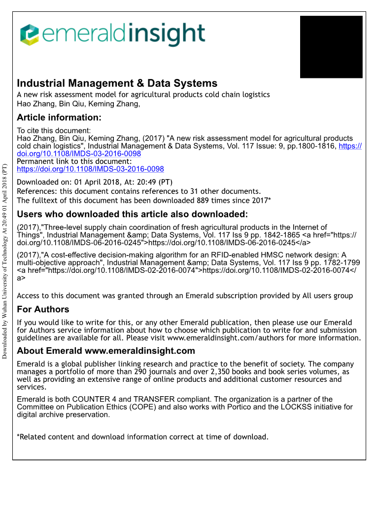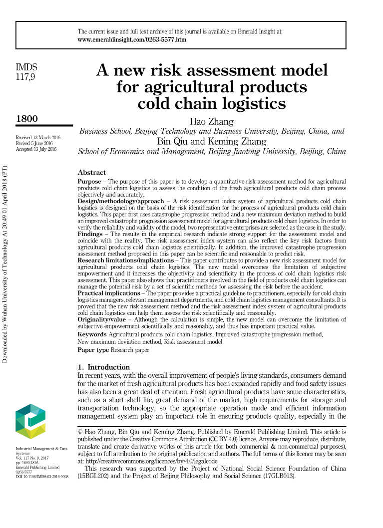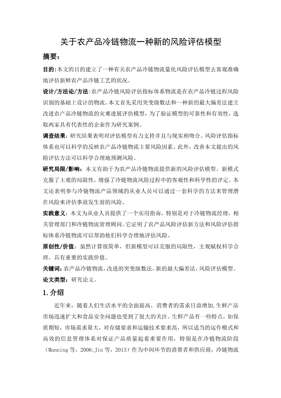 生鲜电商物流需求组合预测研究外文翻译资料 2022-03-12 15:21:13 英语原文共 19 页,剩余内容已隐藏,支付完成后下载完整资料 英语原文共 21 页,剩余内容已隐藏,支付完成后下载完整资料资料编号:[16543],资料为PDF文档或Word文档,PDF文档可免费转换为Word 原文和译文剩余内容已隐藏,您需要先支付 30元 才能查看原文和译文全部内容!立即支付 发小红书推广免费获取该资料资格。点击链接进入获取推广文案即可: Ai一键组稿 | 降AI率 | 降重复率 | 论文一键排版 PREVIOUS NEXT 您可能感兴趣的文章 一种新的需求响应型城市物流配送业务资源动态分配模型外文翻译资料 以T公司为例,根据基于活动的分类改进库存控制和预测外文翻译资料 新零售条件下生鲜食品家庭配送模式研究外文翻译资料 探索大规模定制作为快递行业创新的潜力外文翻译资料 中国的国内快递业发展战略分析外文翻译资料 有效的物流管理物流 :什么是物流?外文翻译资料 运用层次分析法分析供应链管理的绩效评价外文翻译资料 基于分支切割算法定价的带时间窗口的提货和交货问题外文翻译资料 供应链管理中的电子商务物流:实践视角外文翻译资料 第三方物流服务对客户绩效的贡献外文翻译资料