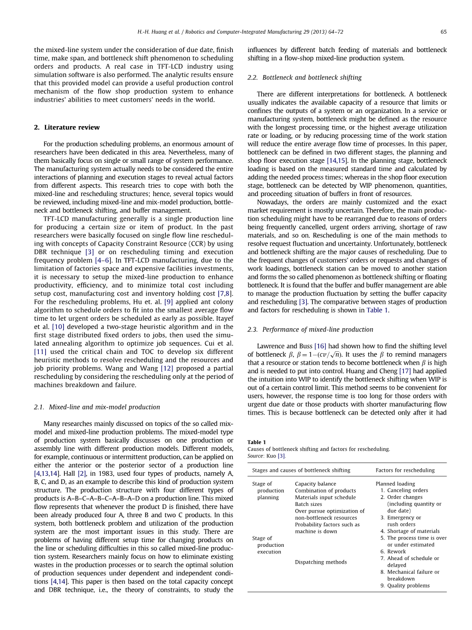 大量的研究人员一直致力于生产调度问题这一领域。 尽管他们中的很多人基本上只关注单一或小范围的系统性能。 但制造系统实际上需要考虑到计划和执行阶段的整个交互过程,以从不同方面揭示实际因素。 这项研究试图应对混合线和重新安排的结构; 因此,将审查几个主题,包括混合生产线和混合模式生产,瓶颈和瓶颈转移以及缓冲区管理。