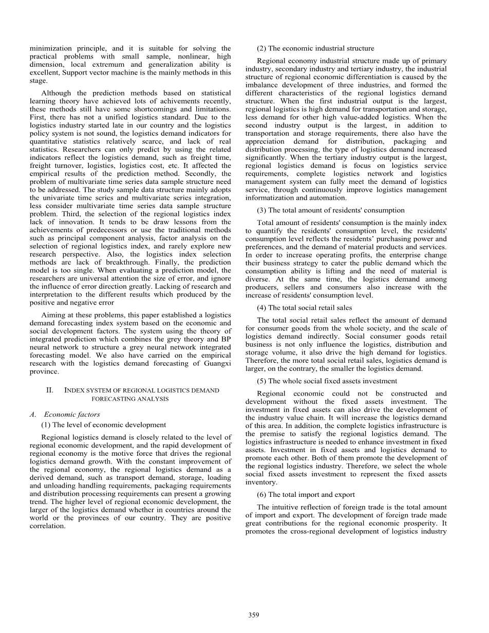 区域物流需求是一个特定地区的生活和生产资料对于运输、仓储、装卸、搬运、包装、流通加工、配送、信息服务等方面的需求。(该地区通常是一个相互关联的网络区域, 往往由中心的大城市和附近的小乡镇组成)。区域物流需求预测研究起源于西方发达国家。工业革命解放了社会生产力, 细化了社会分工, 加快了物流领域的发展步伐。欧美的研究人员通过积极探索和实践, 在这一领域取得了大量的理论和实践研究成果。近年来, 我国物流业发展速度迅速。基于国外的研究成果, 区域物流需求预测研究取得了长足的进展。