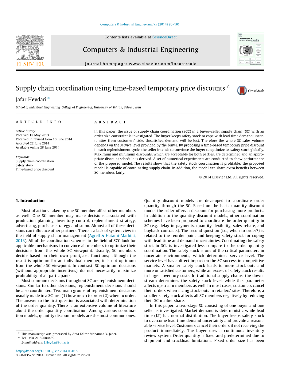 关键词:供应链协调;安全库存;基于时间的价格折扣