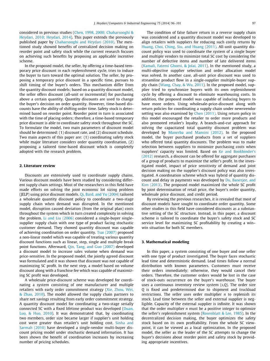 通过对已有研究的回顾,发现大多数折扣模型都试图协调订单数量。这一领域的其他一些研究将折扣视为SC结构的实质性设置。相反,在本文中,我们设计了一个折扣方案,以协调买方的安全库存和供应链服务水平,通过创造双赢的局面,最大限度地提高供应链的盈利能力。