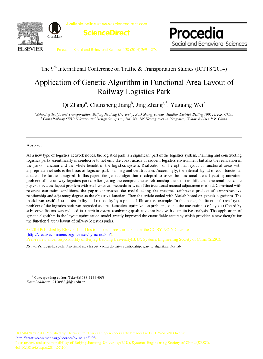 用适当的方法实现功能区域优化布局是物流园区规划和建设的基础。因此,每个功能的内部布局区域可以进一步设计。本文采用遗传算法来解决铁路物流园区问题中的功能区布局优化问题。得到不同职能领域的综合关系图后,论文用数学方法解决了布局问题,而不是传统的手动调整方法。结合相关约束条件下,采用综合最大算术乘积构造模型关系和邻接程度作为目标函数。然后基于遗传算法用Matlab编码。该模型通过一个实际的例子证明了它的可行性和合理性。在本文中,功能区域布局物流园区问题被认为是一个数学优化问题,使得布局受到主观因素影响的不确定性在定性分析和定量分析相结合的基础上有所降低。遗传算法的应用在布局优化模型中大大提高了量化精度,由此提供了铁路物流园区功能区布局问题的新思路。