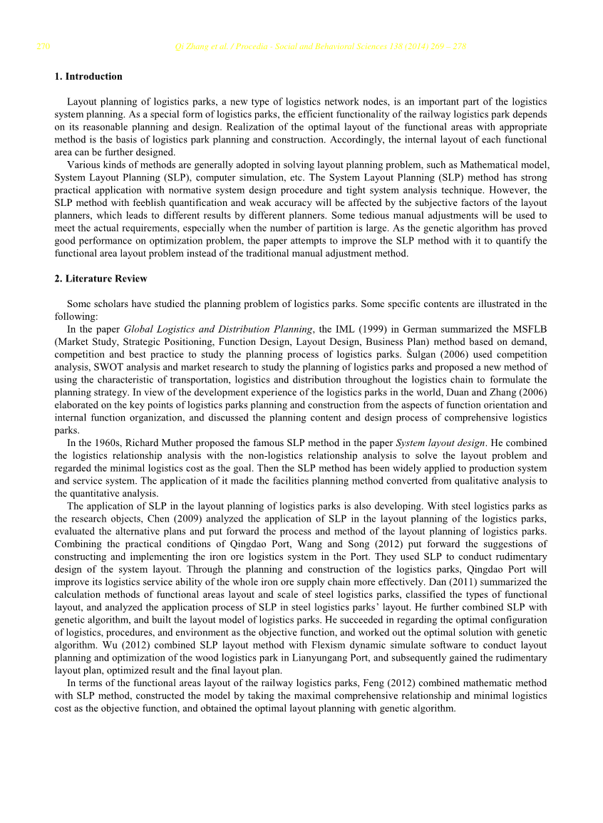 结合青岛港的实际情况,王和宋(2012)提出了建设和实施港口铁矿石物流体系的建议。他们使用SLP进行系统布局的基本设计。通过规划和建设物流园区,青岛港将更有效地提高整个铁矿石供应链的物流服务能力。 Dan(2011)总结了钢铁物流园区功能区布局和规模的计算方法,对功能布局的类型进行了分类,并分析了SLP在钢铁物流园区布局中的应用过程。他进一步将SLP与遗传算法相结合,构建了物流园区布局模型。他成功地将物流,程序和环境的最优配置作为目标函数,并用遗传算法求出最优解。 Wu(2012)将SLP布局方法与Flexism动态模拟软件相结合,对连云港港木材物流园区进行布局规划和优化,并取得了初步布局方案,优化结果和最终布局方案。