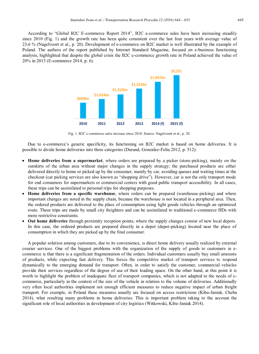 根据“全球2014B2C电子商务报告”,B2C电子商务自2010年以来一直稳步增长,过去四年的增长率相当稳定,平均值为23.6%(Nagelvoort et al.,p .20)。 波兰的例子充分说明了B2C市场上电子商务的发展。 “互联网标准杂志”发表的报告的作者关注电子商务功能,强调尽管全球危机,波兰的B2C电子商务增长率在2013年仍旧达到20%的价值。