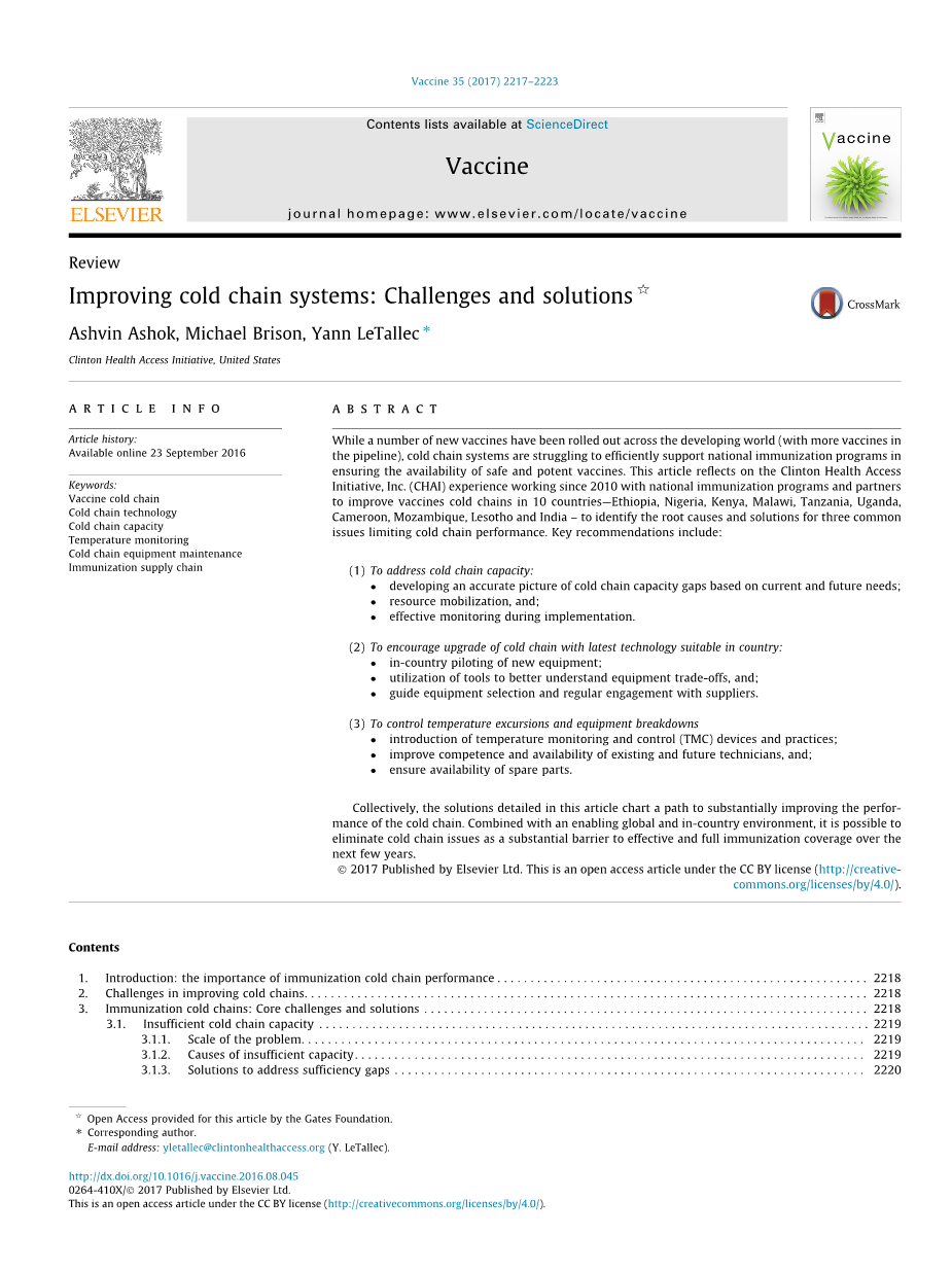 本文反映了自2010年以来,CHAI在国家疫苗计划和合作伙伴方面的经验,从改善埃塞俄比亚,尼日利亚,肯尼亚,马拉维,坦桑尼亚,乌干达,喀麦隆,莫桑比克,莱索托和印度等10个国家的疫苗冷链。