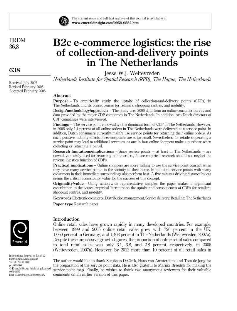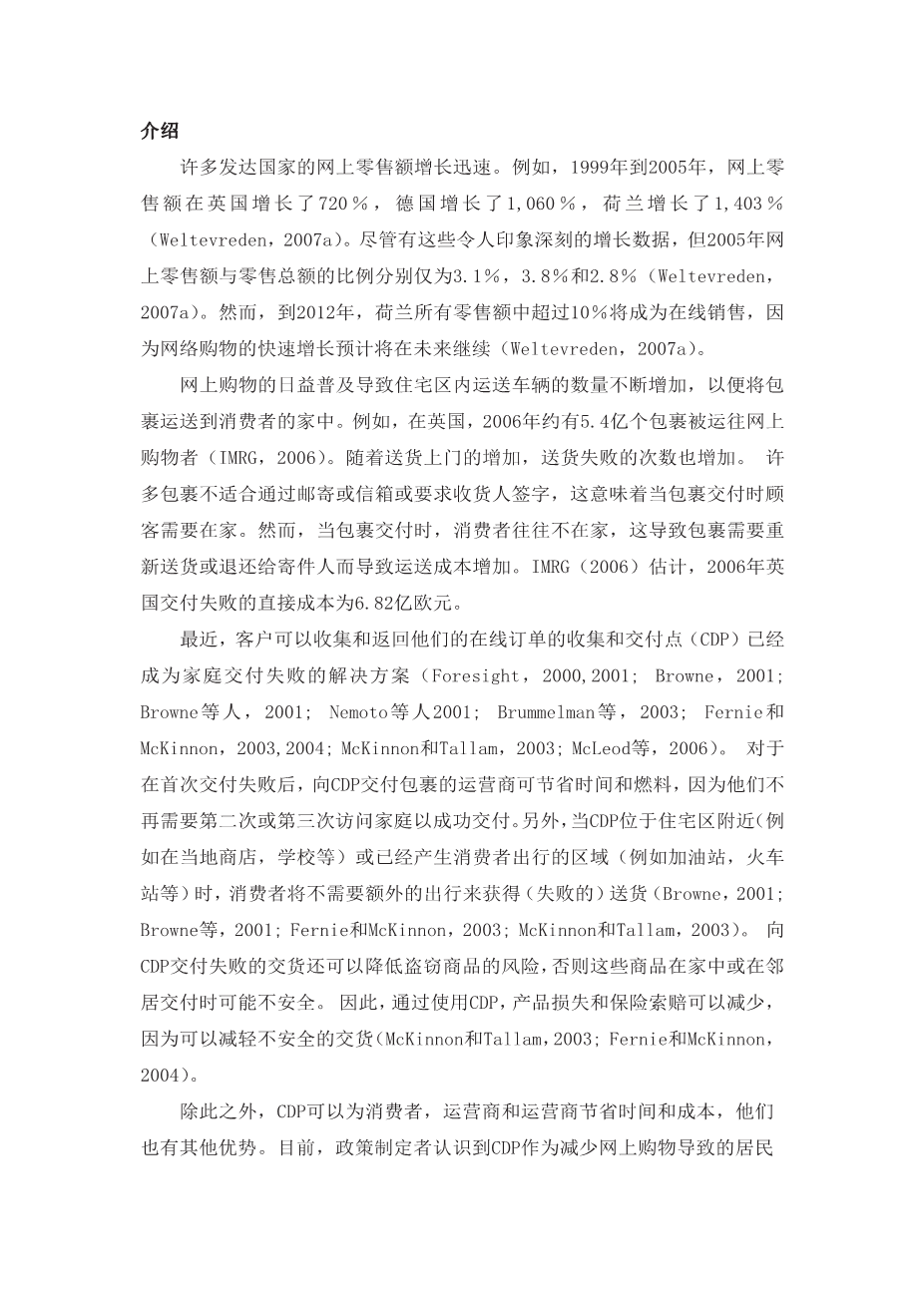 智能快递投递箱的现状分析以及未来趋势预测外文翻译资料 2022-03-28 21:06:13 英语原文共 23 页,剩余内容已隐藏,支付完成后下载完整资料 英语译文共 8 页,剩余内容已隐藏,支付完成后下载完整资料资料编号:[469127],资料为PDF文档或Word文档,PDF文档可免费转换为Word 原文和译文剩余内容已隐藏,您需要先支付 30元 才能查看原文和译文全部内容!立即支付 发小红书推广免费获取该资料资格。点击链接进入获取推广文案即可: Ai一键组稿 | 降AI率 | 降重复率 | 论文一键排版 PREVIOUS NEXT 您可能感兴趣的文章 一种新的需求响应型城市物流配送业务资源动态分配模型外文翻译资料 以T公司为例,根据基于活动的分类改进库存控制和预测外文翻译资料 新零售条件下生鲜食品家庭配送模式研究外文翻译资料 探索大规模定制作为快递行业创新的潜力外文翻译资料 中国的国内快递业发展战略分析外文翻译资料 有效的物流管理物流 :什么是物流?外文翻译资料 运用层次分析法分析供应链管理的绩效评价外文翻译资料 基于分支切割算法定价的带时间窗口的提货和交货问题外文翻译资料 供应链管理中的电子商务物流:实践视角外文翻译资料 第三方物流服务对客户绩效的贡献外文翻译资料