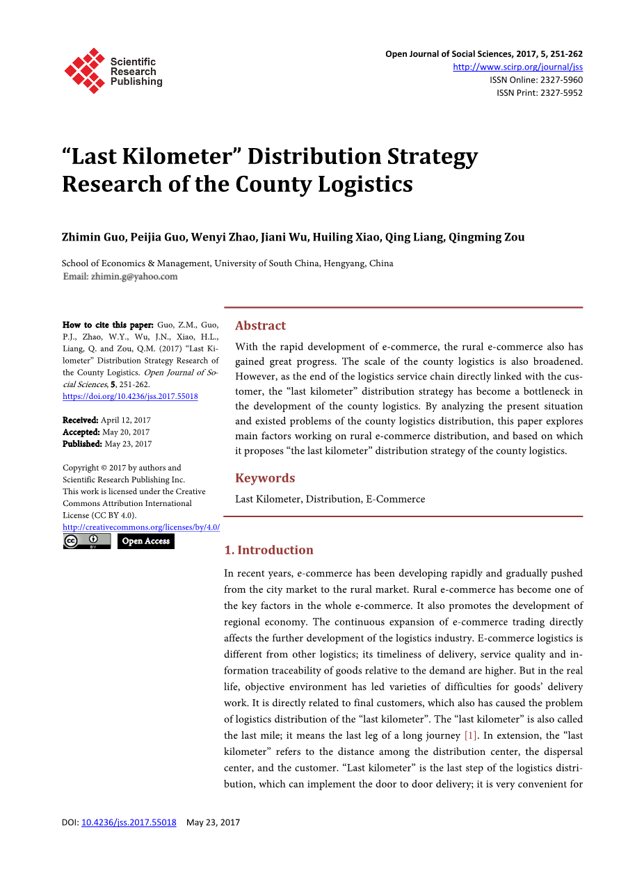近年来,电子商务发展迅速,逐步从城市市场向农村市场推进。农村电子商务已成为整个电子商务的关键因素之一。它也促进了区域经济的发展。电子商务交易的持续扩张直接影响着物流产业的进一步发展。电子商务物流不同于其他物流;其交货的及时性、服务质量和与需求相关的商品信息可追溯性都较高。但在现实生活中,客观环境导致了货物配送工作的种种困难。它直接关系到最终客户,这也导致了“最后一公里”物流配送问题。“最后一公里”也叫“最后一英里”;这是长途旅行的最后一站。“最后一公里”是指配送中心、分散中心和客户之间的距离。“最后一公里”是物流配送的最后一步,可以实现门到门的送货;这对用户来说是非常方便的,客户的满意度会得到提高,从而扩大客户基础的优势。在农村地区,由于特殊的社会经济条件,“最后一公里”电子商务配送已成为制约县域农村物流发展的瓶颈。