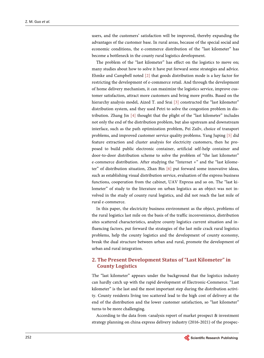 “最后一公里”的问题影响着物流的前进;许多关于如何解决这一问题的研究都提出了一些策略和建议。Ehmke和Campbell认为商品分销模式是制约电子商务零售发展的关键因素。通过发展家庭配送机制,使物流服务最大化,提高客户满意度,吸引更多的客户,带来更多的利润。Aized T.和Srai基于层次分析模型构建了“最后一公里”配送系统,利用Petri网解决配送中的拥塞问题。张晋认为,“最后一公里”的困境不仅包括配送问题的终结,也包括上下游界面,如路径优化问题、配载率、运输问题的选择、客户服务质量问题的改善。杨菊萍对电力客户进行了特征提取和聚类分析,提出构建公共电子容器、人工自助容器、门到门配送方案,解决“最后一公里”电商配送问题。通过对“互联网 ”和“最后一公里”配送情况的研究,詹斌提出了一些创新的思路,如建立视觉配送服务、快递业务功能评估、柜员合作、无人机快递等。以城市物流文献为研究对象的“最后一公里”研究并没有涉及到县域农村物流的研究,也没有达到农村电子商务的最后一英里。
