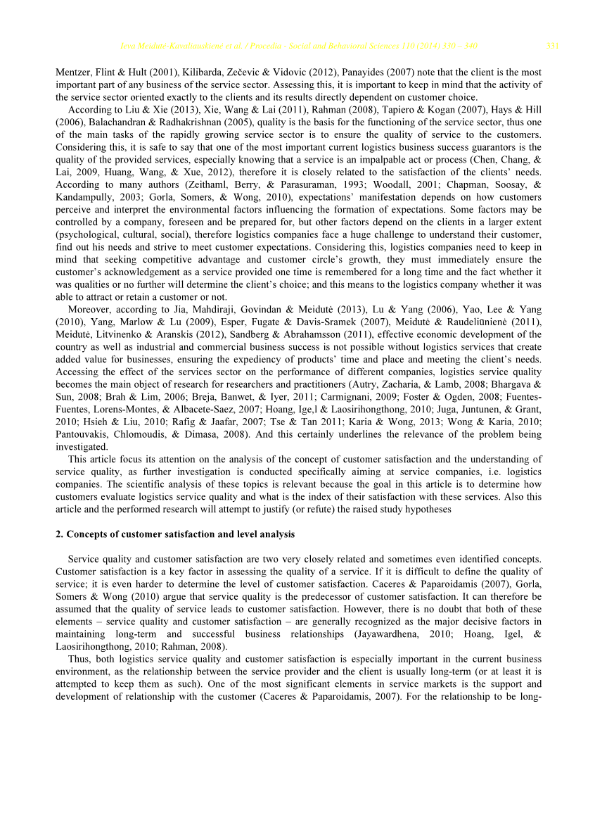 因此,物流服务质量和客户满意度在当前的业务环境中尤其重要,因为服务提供商和客户机之间的关系通常是长期的。服务市场中最重要的元素之一是与客户的关系的支持和发展。为了长久的关系长期以来,物流服务提供商必须提供符合客户期望的服务,从而达到客户满意的适当水平。