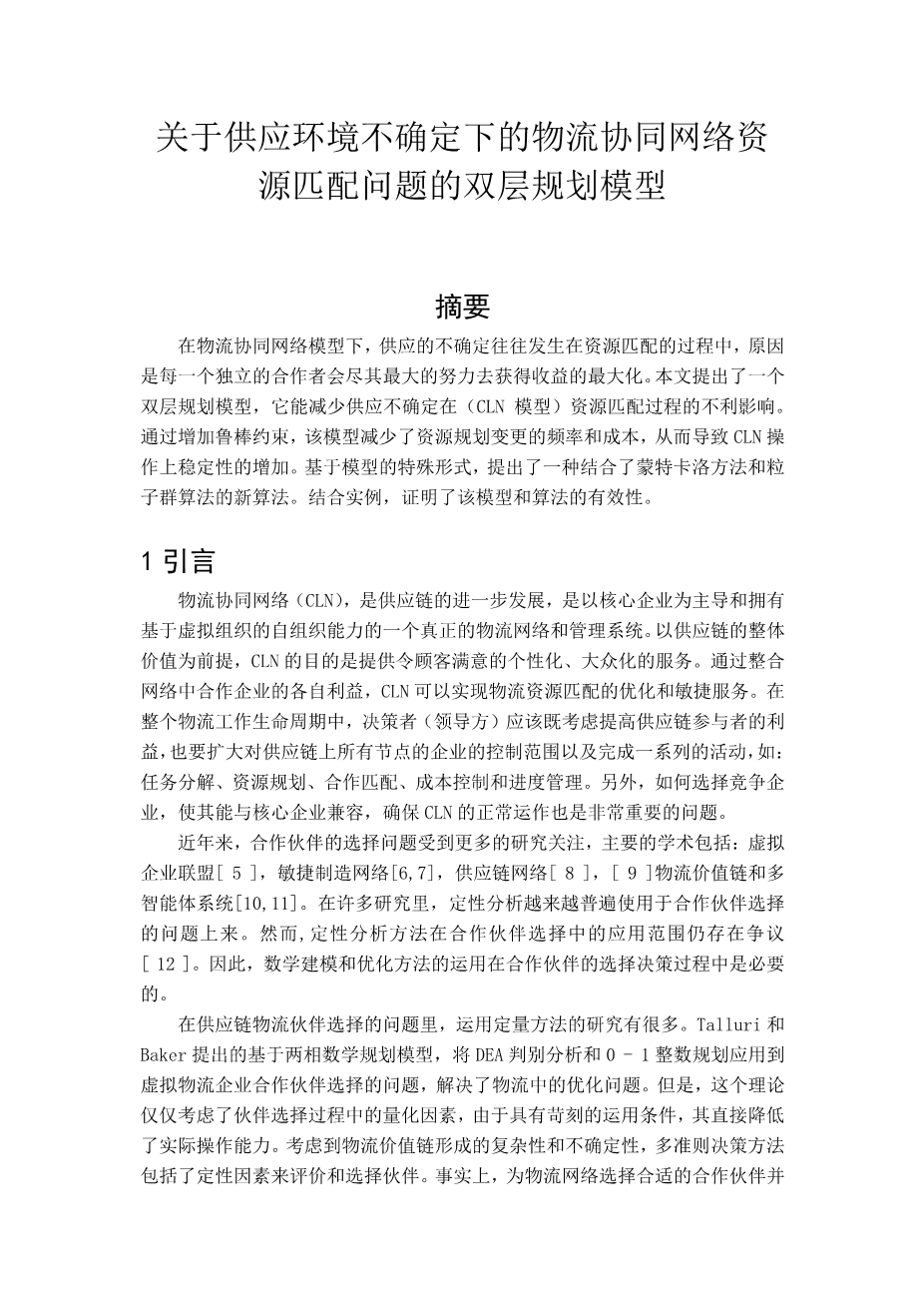 面向农村快递物流的末端配送体系优化研究外文翻译资料 2022-04-05 20:57:43 英语原文共 12 页,剩余内容已隐藏,支付完成后下载完整资料 英语原文共 10 页,剩余内容已隐藏,支付完成后下载完整资料资料编号:[14577],资料为PDF文档或Word文档,PDF文档可免费转换为Word 原文和译文剩余内容已隐藏,您需要先支付 30元 才能查看原文和译文全部内容!立即支付 发小红书推广免费获取该资料资格。点击链接进入获取推广文案即可: Ai一键组稿 | 降AI率 | 降重复率 | 论文一键排版 PREVIOUS NEXT 您可能感兴趣的文章 一种新的需求响应型城市物流配送业务资源动态分配模型外文翻译资料 以T公司为例,根据基于活动的分类改进库存控制和预测外文翻译资料 新零售条件下生鲜食品家庭配送模式研究外文翻译资料 探索大规模定制作为快递行业创新的潜力外文翻译资料 中国的国内快递业发展战略分析外文翻译资料 有效的物流管理物流 :什么是物流?外文翻译资料 运用层次分析法分析供应链管理的绩效评价外文翻译资料 基于分支切割算法定价的带时间窗口的提货和交货问题外文翻译资料 供应链管理中的电子商务物流:实践视角外文翻译资料 第三方物流服务对客户绩效的贡献外文翻译资料