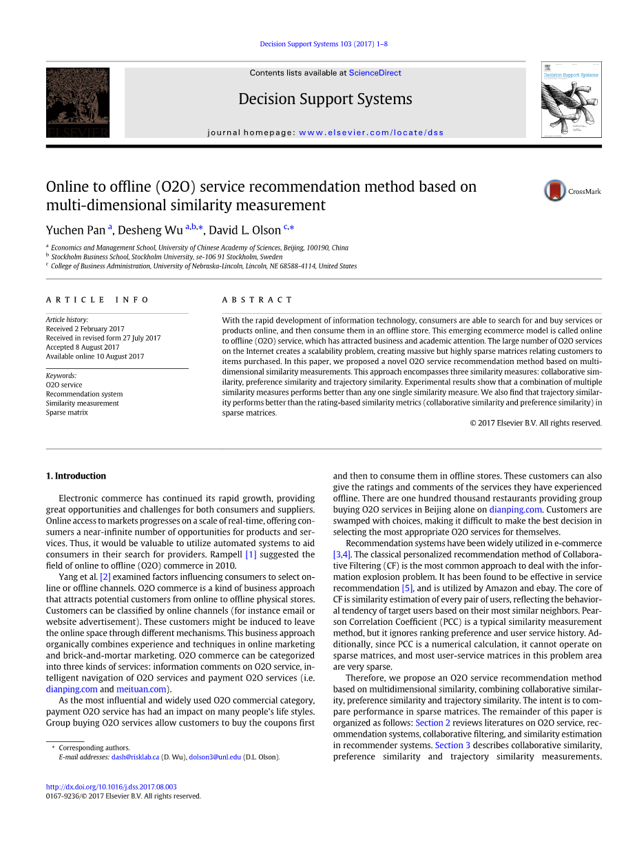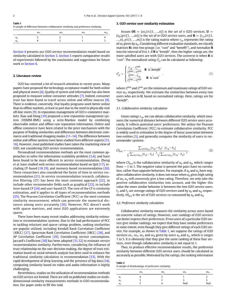 然而,关于推荐方法在O2O服务中应用的研究是有限的。在O2O推荐中,目前还没有关于多维相似度测量方法的发表研究。我们的论文试图填补这一空白。